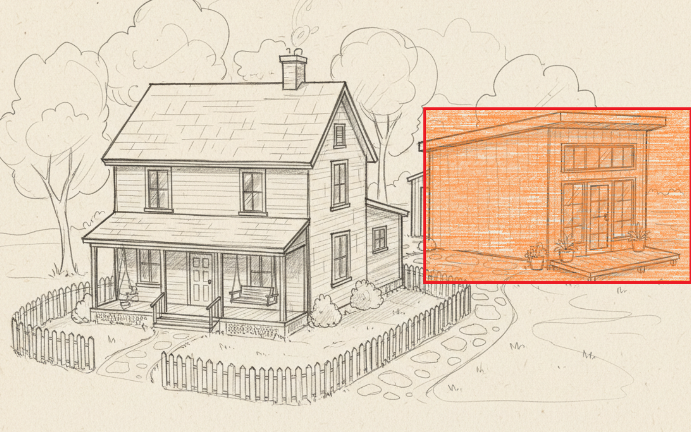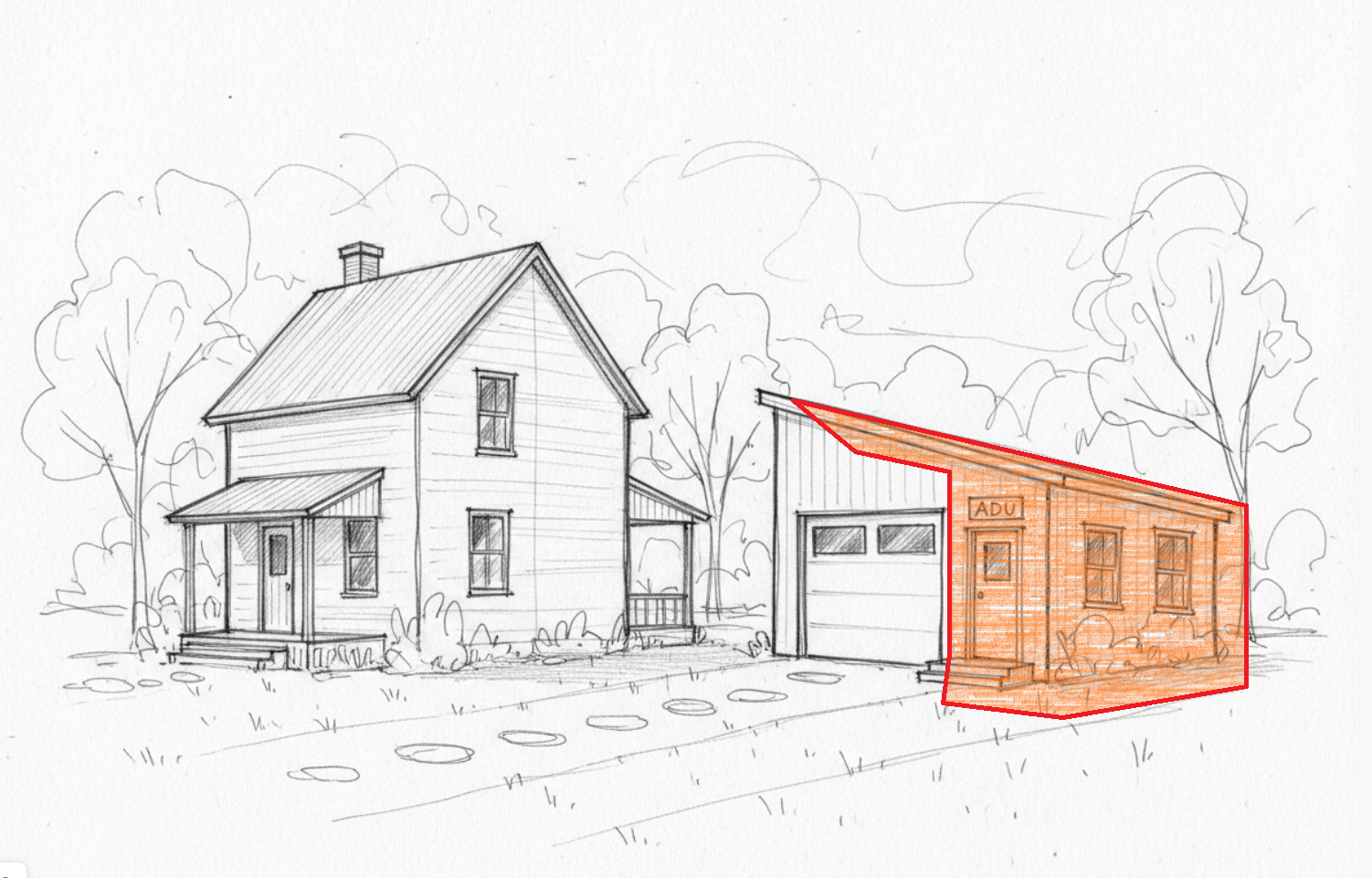 ACCESSORY DWELLING UNITS (“Attached” ADUs/ ”Detached” DADUs) involve upgrading existing structures, adding capacity, and converting underutilized spaces into functional living areas. This can include adding kitchenettes, installing bathrooms, transforming garages, basements, or outbuildings into livable spaces, or creating a complete freestanding residence for either in-home care, extended family, long-term stays, or rental income.